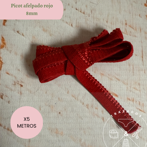 Elástico picot afelpado 8mm rojo