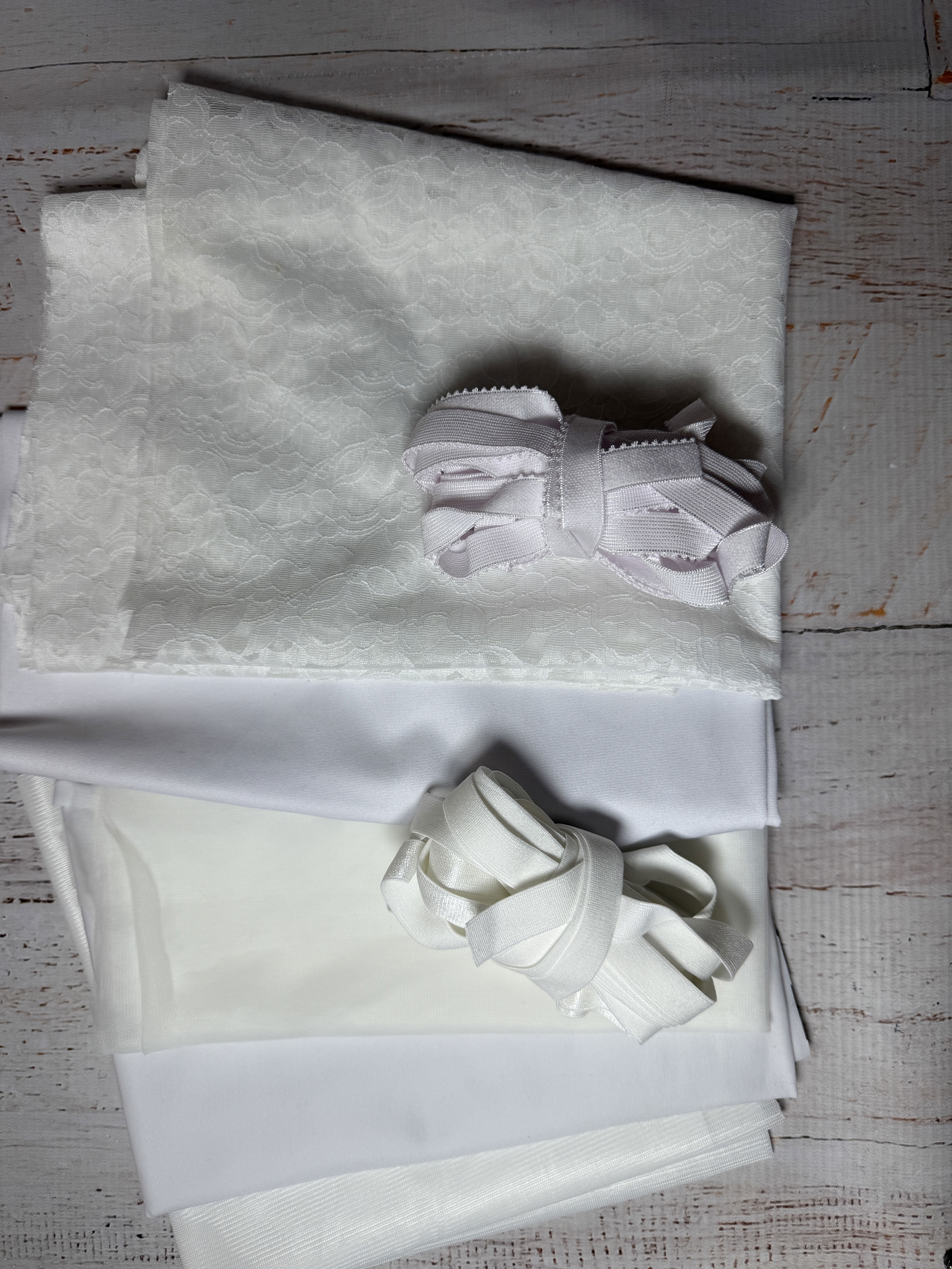 Todo lo necesario para hacer entre 3 y 5 corpiños reductores: microfibra pesada paño de 70x70cm, cetinette paño de 80x30cm, encaje rígido de corsetería 50cm por al ancho , denier semirrígido, jersey bloqueado 50cm, 5 metros de elástico picot de 1,5cm y 5 metros de bretel de 1,5cm.