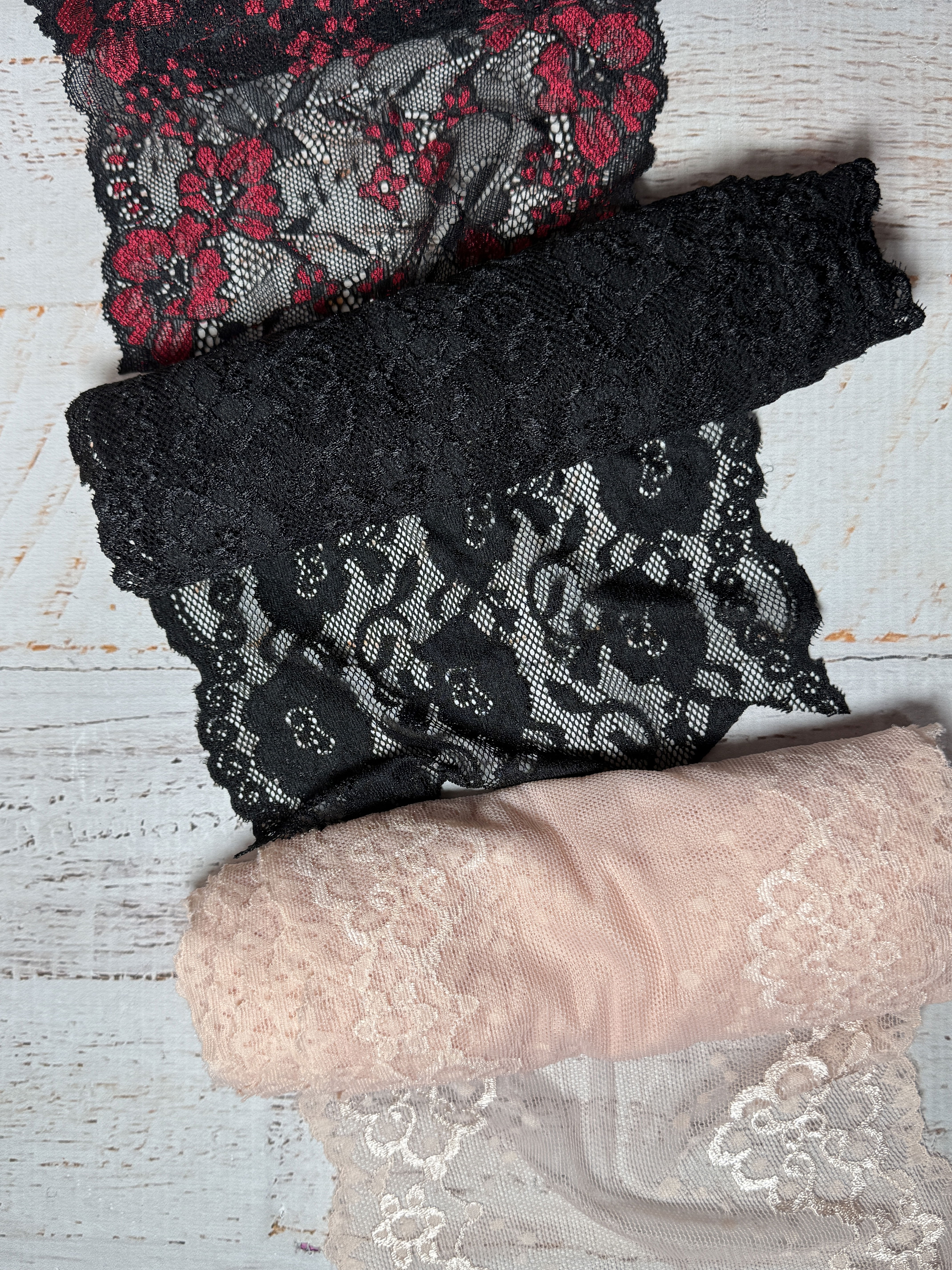 Anchos y colores surtidos, los que ves en la foto.